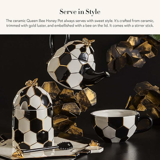 MACKENZIE-CHILDS Ceramic Queen Bee Honey Pot with Lid, Beehive Decor for Kitchen