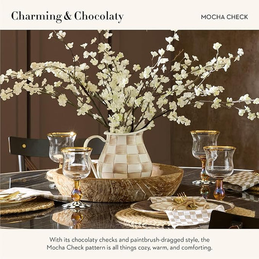 MACKENZIE-CHILDS Enamel Pitcher with Spout for Water, Cut Flowers, and Home Decor, 3 Quarts, Brown-and-White Mocha Check