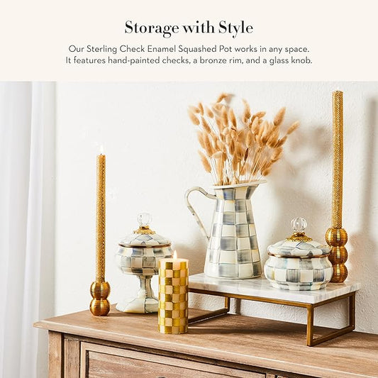 MACKENZIE-CHILDS Enamel Squashed Pot, Cute Enameled Container with Lid, 20 Ounces, Gray-and-White Sterling Check