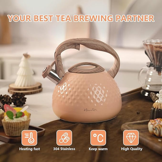 harriet Tea Kettle, Tea Pot for Stovetop, 2.5QT Whistling Kettle with 5-Layers bottom, Food Grade Stainless Steel Kettles with Hot-Resistant Handle Gas Electric Applicable, Peach