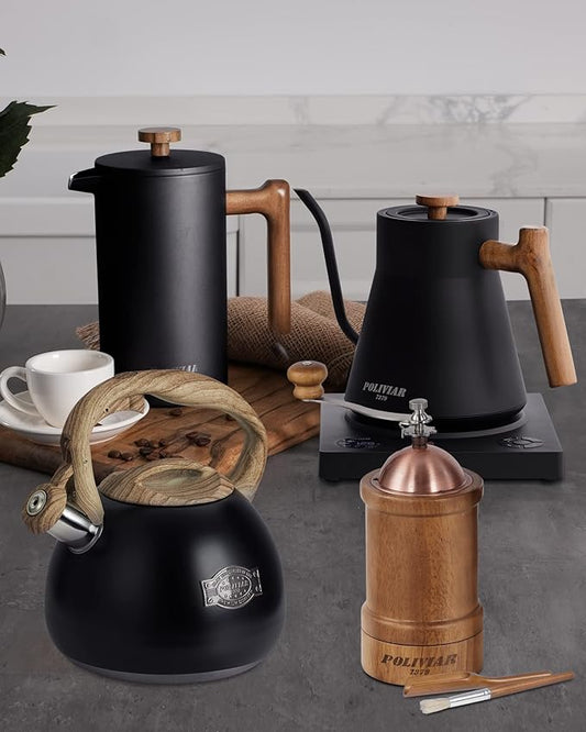 POLIVIAR Tea Kettle, Black Ti Stovetop Tea Kettle 2.7 Quart , Audible Whistling Teapot, Food Grade Stainless Steel for Anti-Rust and Anti Hot Handle, Suitable for All Heat Sources (JX2018-WB20)