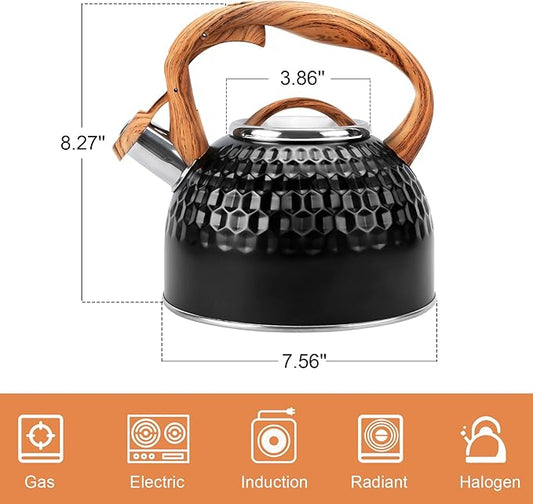 Tea Kettle 3.2Qt Stainless Steel Stovetop Whistling Pot with Heat-Resistant Handle, Fast Boiling Water for Home Kitchen, Induction Compatible & Rust-Proof - Black