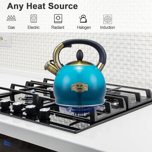 Whistling Tea Kettle Stove Top Teapot, Stainless Steel Teakettle (2.8 QUART, Blue)