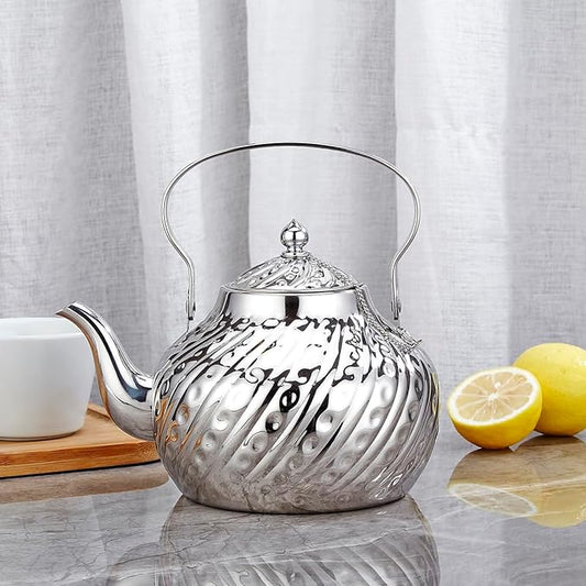 SANQIAHOME 2000ml stainless steel antique style teapot,with Infuser, thickened boiling kettle, lifting handle,Silver