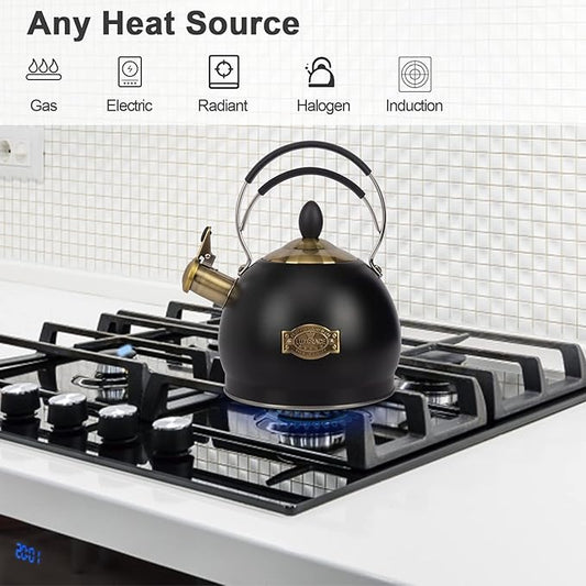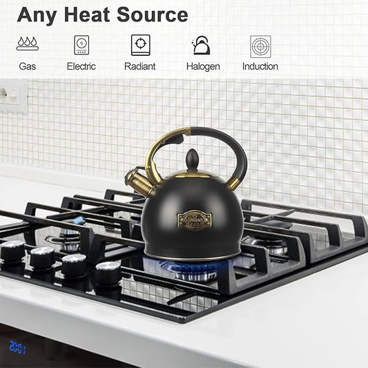 Stainless Steel Whistling Tea Kettle with Metal Capsulated Bottom for Quick Heat Distribution 2.8 Quart