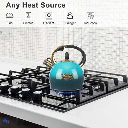 Stainless Steel Tea Kettle for Stove Top Teakettles Stovetop Whistling with Heat Proof Ergonomic Handle 2.5 Quart