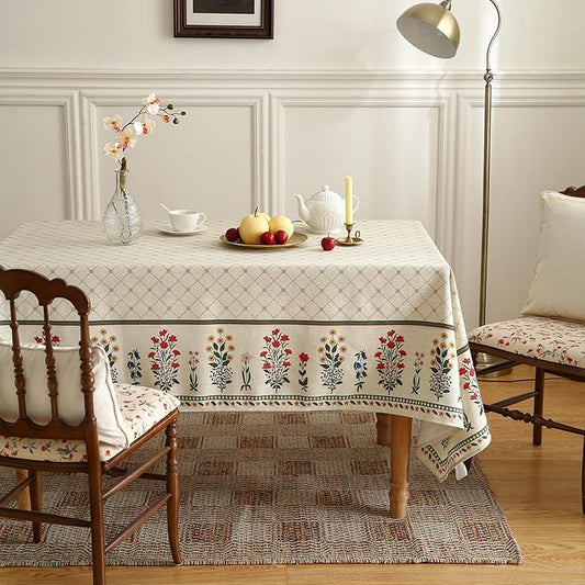 Designer Bohemian Linen Long Tablecloth Rectangle,Colorful Floral Pattern Table Cloth,Wrinkle Resistant Decorative Tablecloths for Dining Thanksgiving Kitchen Party,63"*102"-Grace A