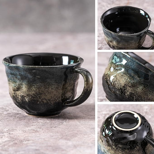 Coffee Mugs Cup, 8 OZ Ceramic Coffee Mugs with Gold Spoon for Man Woman, Modern Set of 4 Cup for Espresso Latte Cappuccino Cocoa Tea Dishwasher & Microwave Safe (Star Pulse)
