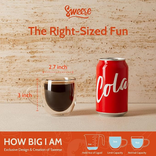 Sweese 5oz Double Wall Glass Espresso Cups Set of 4, Clear Glass Espresso Shot Cups Perfect for Cappuccino, Latte, Tea