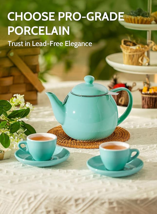 Sweese Teapots for Tea, 27 oz Porcelain Tea pot with Removable Stainless Steel Infuser, Tea Pots for Loose Tea - Mint Green