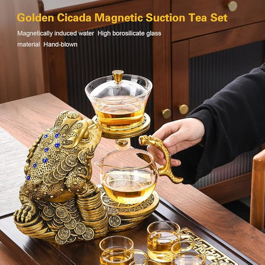 Creative Golden Cicada Shaped Magnetic Tea Pot - Semi Automatic Glass Teapot with Lazy Kungfu Drip Function - Suitable for Home/Office Reception Tea Set