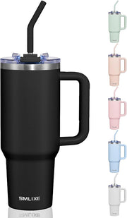 Insulated Tumbler Cups for Hot and Cold - 40 oz Travel Mug with Handle, Spill Proof Straw and Spout Lid, Leak Resistant Stainless Steel Water Bottle Keep Cold-34H, Dishwasher Safe