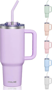 COKTIK 40 oz Tumbler With Handle and Straw Lid, Vacuum Insulated Travel Coffee Mug Stainless Steel Insulated Cup for Beverages, Leak-proof, Cupholder Friendly (Lavender)