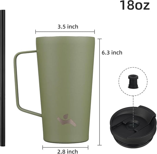 Insulated Tumbler with Handle and Straw, 18 OZ Travel Coffee Mug Stainless Steel Cup Metal Water Bottle,Camp Green