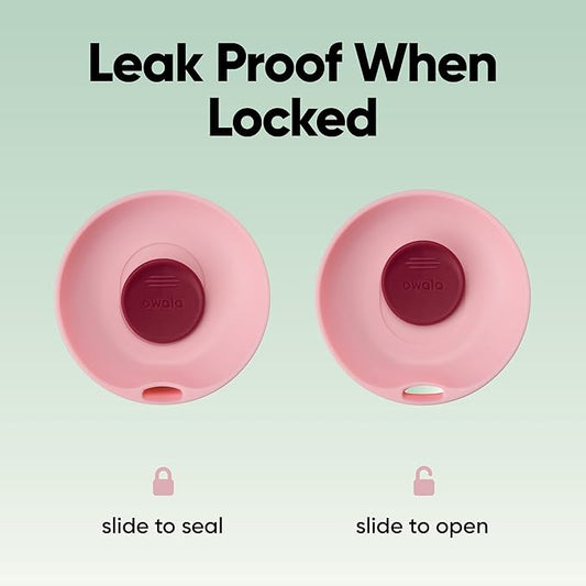Owala SmoothSip Slider Insulated Stainless Steel Coffee Tumbler, Reusable Iced Coffee Cup, Hot Coffee Travel Mug, BPA Free 12 oz, Pink/Red (Strawberry Fields)