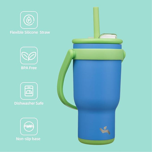 30 oz Tumbler with Side Handle, Insulated Water Bottle with Straw and 2 in 1 Lid, Stainless Steel Cup Travel Coffee Mug for Sports Office Gym,Sky Blue