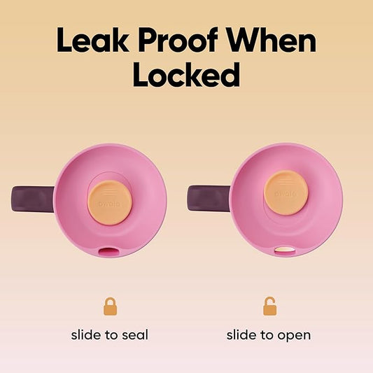 Owala SmoothSip Slider Stainless Steel Insulated Travel Mug, 100% Leak Proof, For Hot and Cold Drinks, Travel Friendly with Sliding Lock Lid, 24 oz, BPA Free, Leak Proof, Pink/Tan (Daybreak)