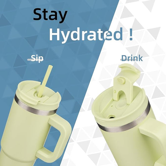 40 oz Tumbler with Handle and 2 Straws,2 in 1 Lid Insulated Water Bottle Stainless Steel Travel Coffee Mug,Macaron Green