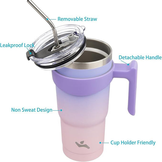 20 oz Tumbler with Handle and 2 Straw 2 Lid, Insulated Water Bottle Stainless Steel Vacuum Cup Reusable Travel Mug,Pastel Sunset