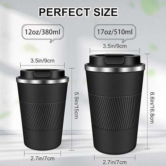 Coffee Travel Mug 12 oz & 17 oz Insulated Coffee Mug with Lid Portable Spill-Proof Coffee Travel Mug No Handle Reusable Stainless Steel Mug Keeps Cold and Hot Suitable for Car, Daily, Travel and Gifts