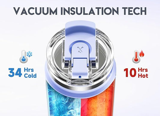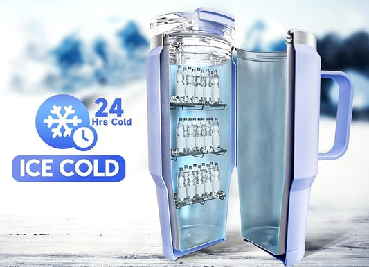 40oz Tumbler with Handle | Insulated Stainless Steel Travel Mug | 34Hrs Cold & 10Hrs Hot Retention | 100% Leakproof Lid & Straw | Dishwasher Safe + Car Cup Holder Fit (Light Blue Violet Gradient)