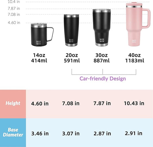 WETOWETO 40oz Tumbler with Handle and Lid | 100% Leakproof Insulated Stainless Steel Travel Mug | Keeps Cold 34Hrs/Hot 10Hrs | Dishwasher Safe, Fits Car Cup Holder (Blush Color)