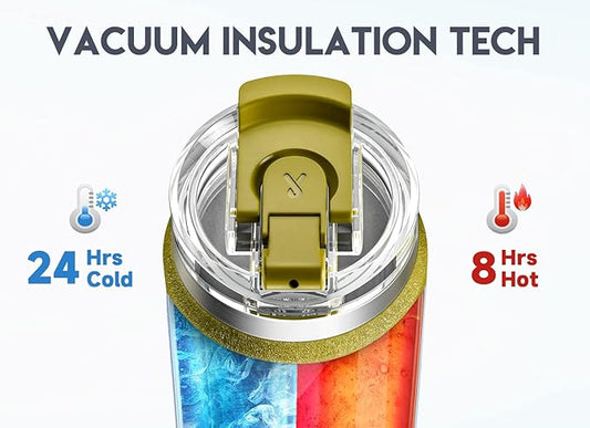 Meoky 24oz Travel Mug, Triple Insulated Stainless Steel Tumbler with Handle and 2-in-1 Straw and Sip Lid, 100% Leak Proof, Keeps Cold for 24 Hours or Hot for 8 Hours, Cupholder Friendly (Forest)