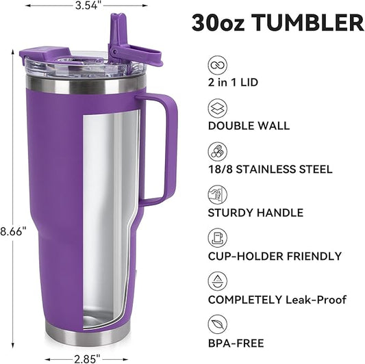 HASLE OUTFITTERS 30oz Tumbler With Handle, Insulated Travel Coffee Mug With Straw Leak-Proof Double Wall Stainless Steel Vacuum Tumblers Metal Cup with Straw for Hot and Cold Drink