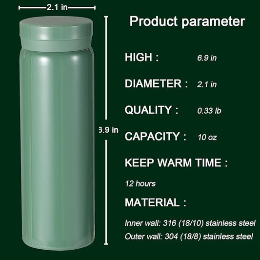 10oz Mini Water Bottle Stainless Steel Thermos Small Flask - Insulated Vacuum, Leak Proof, Keeps Drinks Hot/Cold - Ideal for Coffee, Tea, Water - Green