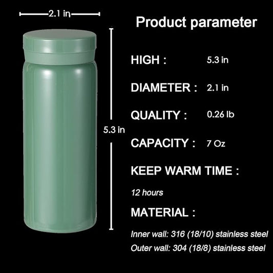 Mini Thermos Cute Water Bottle - 7 oz Tiny Insulated Vacuum 18/10 Stainless Steel Small Flask - Leak Proof & Spill Proof & Keeps Cold and Hot for Drink, Coffee, Tea - Green