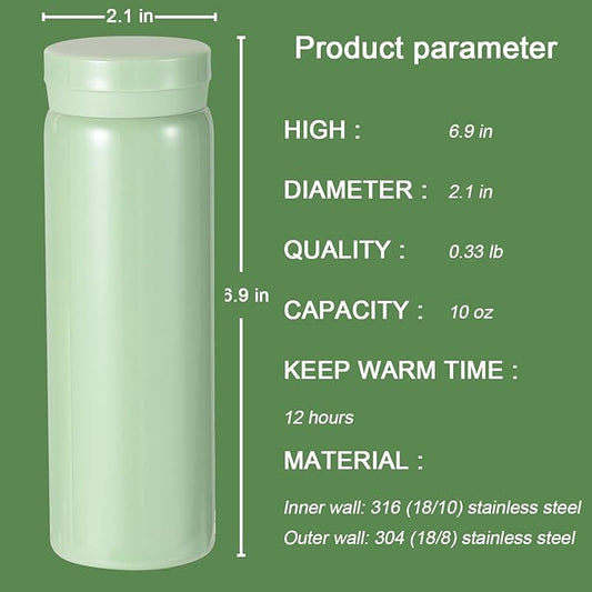 10oz Mini Water Bottle Stainless Steel Thermos Small Flask - Insulated Vacuum, Leak Proof, Keeps Drinks Hot/Cold - Ideal for Coffee, Tea, Water - Light green