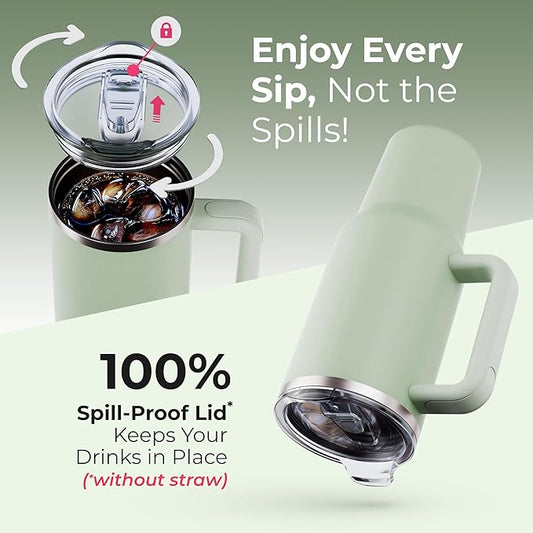 40 oz Tumbler With Handle and Straw Made of Stainless Steel - Double Wall Vacuum Insulated Tumbler With Lid - Sweat Proof Easy Grip, BPA-Free, Dishwasher Safe Tumbler (Sea Sage)