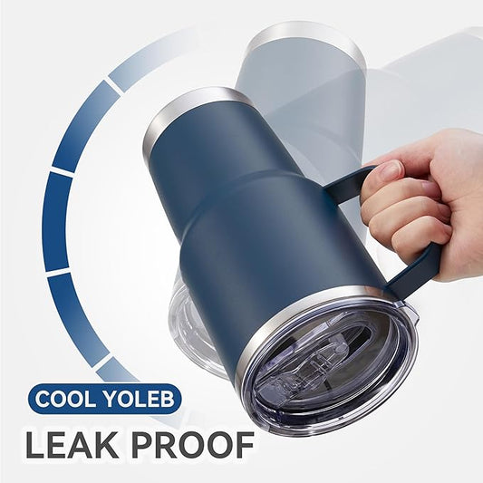 30 oz Tumbler with Handle and Lid, Stainless Steel Tumblers Double Wall Vacuum Insulated Travel Mug Leak Proof Cup Keep Drinks Cold and Hot Navy, 1 Pack