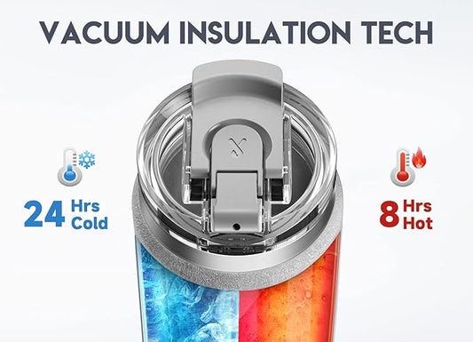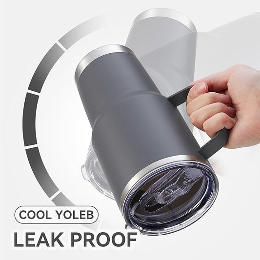 Meoky 24oz Travel Mug, Triple Insulated Stainless Steel Tumbler with Handle and 2-in-1 Straw and Sip Lid, 100% Leak Proof, Keeps Cold for 24 Hours or Hot for 8 Hours, Cupholder Friendly (Rock)