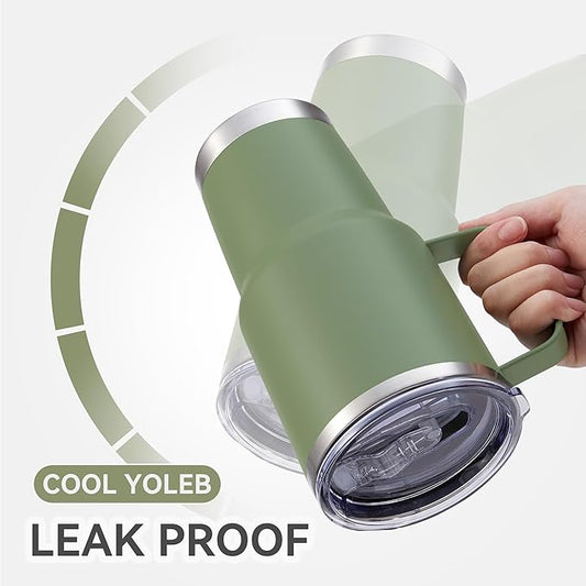 30 oz Tumbler with Handle and Lid, Stainless Steel Tumblers Double Wall Vacuum Insulated Travel Mug Leak Proof Cup Keep Drinks Cold and Hot Army Green, 1 Pack