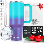 40 oz Tumbler with Handle and 2 Straw 2 Lid, Insulated Water Bottle Stainless Steel Vacuum Cup Reusable Travel Mug,Sky