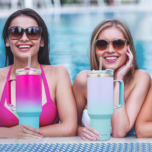 COKTIK 40 oz Tumbler With Handle and Straw Lid, Vacuum Insulated Travel Coffee Mug Stainless Steel Insulated Cup for Beverages, Leak-proof, Cupholder Friendly (Sweet Candy)