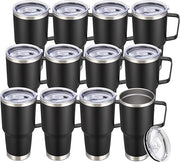 30 oz Tumbler with Handle and Lid, Stainless Steel Tumblers Bulk Double Wall Vacuum Insulated Travel Mug Leak Proof Cup Keep Drinks Cold and Hot Black, 12 Pack