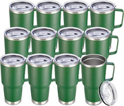 30 oz Tumbler with Handle and Lid, Stainless Steel Tumblers Bulk Double Wall Vacuum Insulated Travel Mug Leak Proof Cup Keep Drinks Cold and Hot Dark Green, 12 Pack