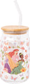 Silver Buffalo Disney Princesses Featuring Rapunzel Tangled, Ariel Little Mermaid, Tiana Princess and the Frog Spring Floral Glass Jar Tumbler with Bamboo Lid and Glass Straw, 16 Ounces