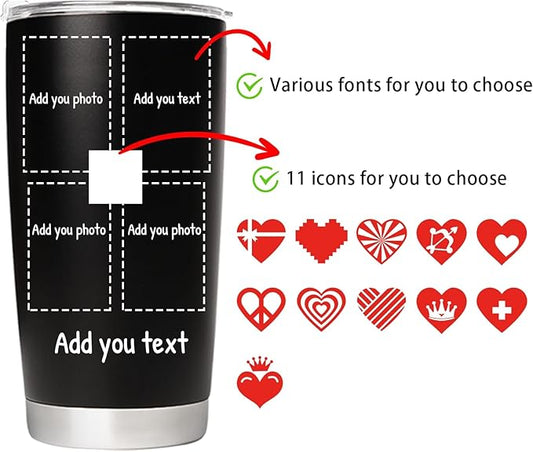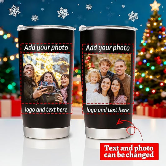 Personalized Coffee Tumbler with Pictures Text, 20oz Custom Insulated Stainless Steel Tumbler, Customized Christmas Birthday Gifts for Women Men, Custom Travel Coffee Cup with Lids
