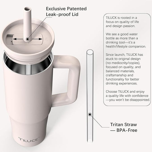 TILUCK 40 oz Tumbler with Handle, Vacuum Insulated Stainless Steel Travel Mug with 100% Leak-Proof Silicone Straw Lid, Cupholder Friendly Water Bottle(SakuraPink, 40oz)