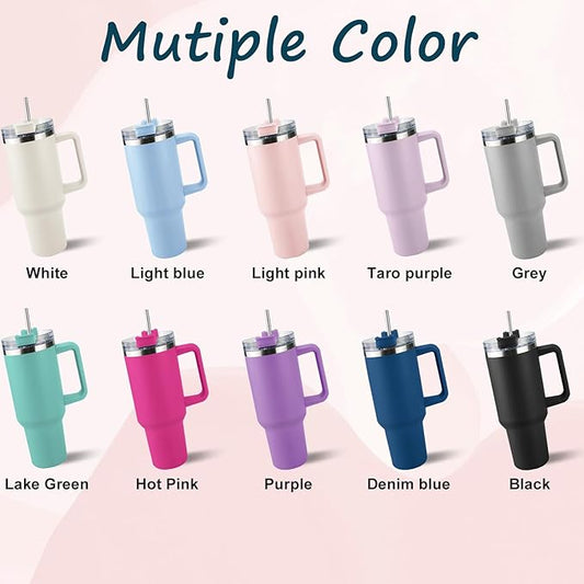 Ships Next Day,40 oz Tumbler with Handle and Straw,Custom Stainless Steel Insulated Cups with Name Travel Coffee Mug Personalized Wedding Mother's Birthday Christmas Gifts for Women