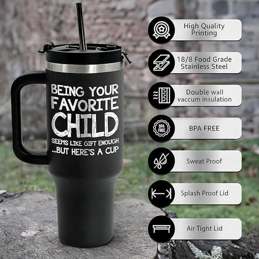 Engraved 40 oz Tumbler Being Your Favorite Child - Fathers Day Present From Daughter - Dad Birthday - Grandpa Tumbler - Grandpa Birthday Gifts - Gift For Dad For Fathers Day, Papa Gift