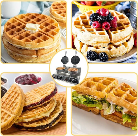 Double Head Commercial Waffle Maker, 2400W Stainless Steel Nonstick Waffle Iron with 122℉ to 572℉ Temp Range & Time Control, Perfect for Home Cafe Restaurant Snack Bar Bakeries