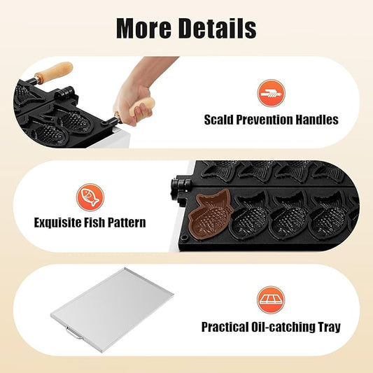Taiyaki Fish Waffle Maker, 6PCS Electric Fish-Shaped Mold Baker 2400W Stick-Resistent Stainless Steel Commercial Waffle Iron Baker Machine for Restaurant Cafe Snack Shop Food Stall