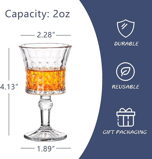 Shot Glasses, 2oz Mini Wine Glasses Set of 6, Fancy Shot Glasses/Great for White and Red Wine/Wine Glass Clear/Tasting Glasses/Cute/Etching Patterns
