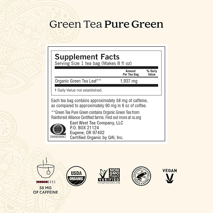 - Organic Green Tea: Embark on a journey to vitality with a cup of Yogi Green Tea Pure Green Tea; this tea combines high-quality Organic Green Tea leaves for a robust tea with an elegant aroma