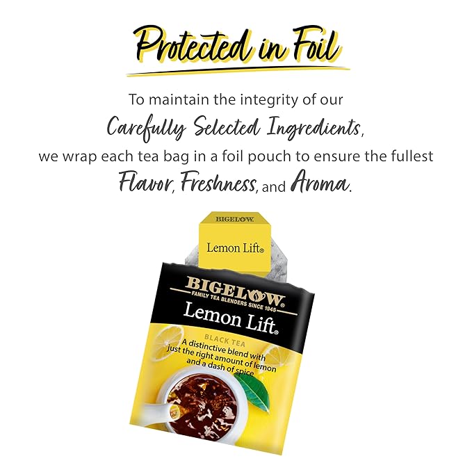 - Individually Wrapped: Bigelow Tea always come individually wrapped in foil pouches for peak flavor, freshness and aroma to enjoy everywhere you go! Gluten-free, calorie-free, and Kosher Certified