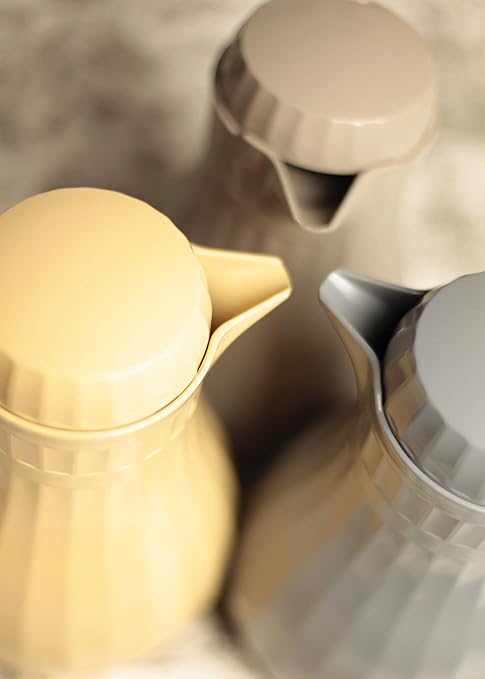 - EASY TO USE: Features a convenient push-button lid for effortless pouring.